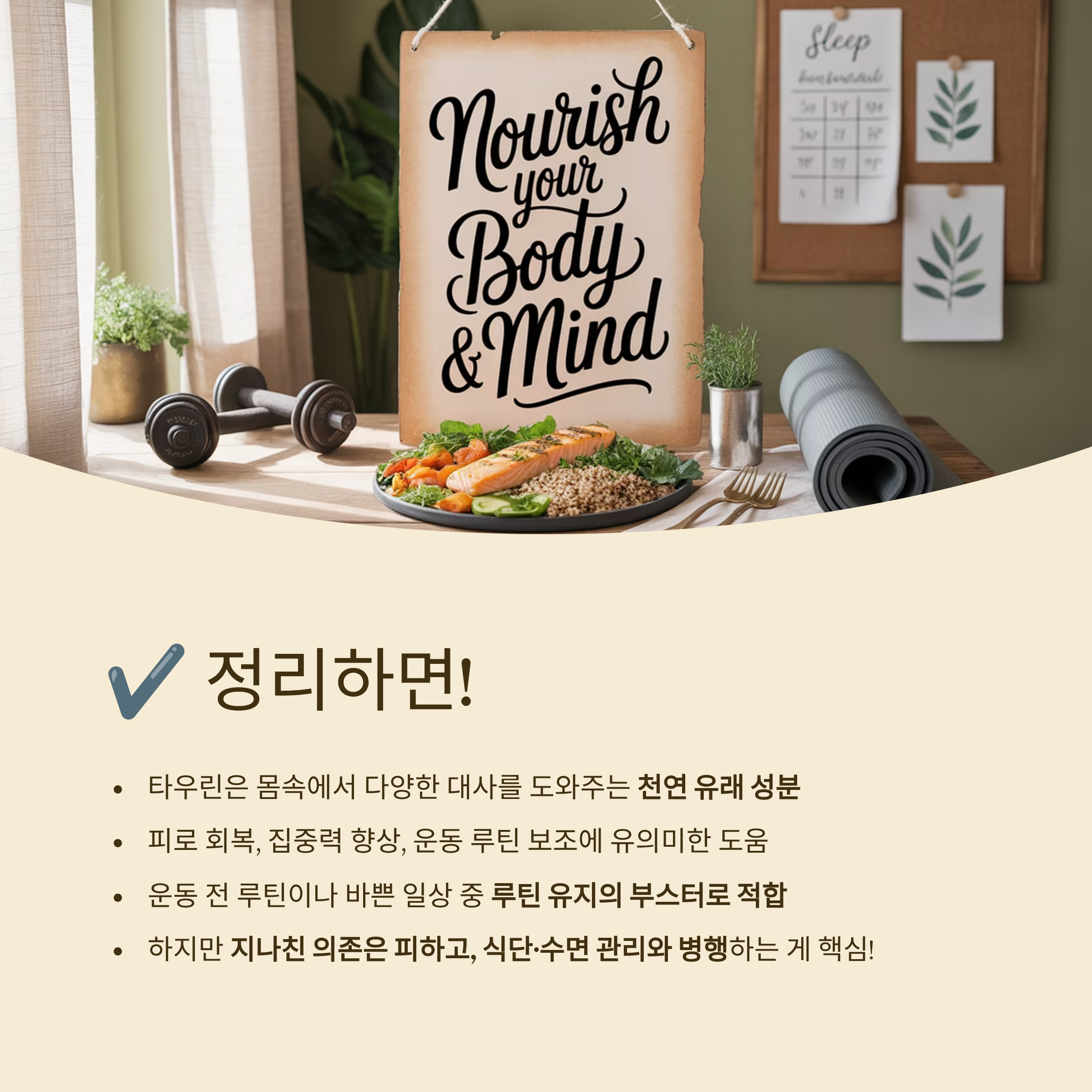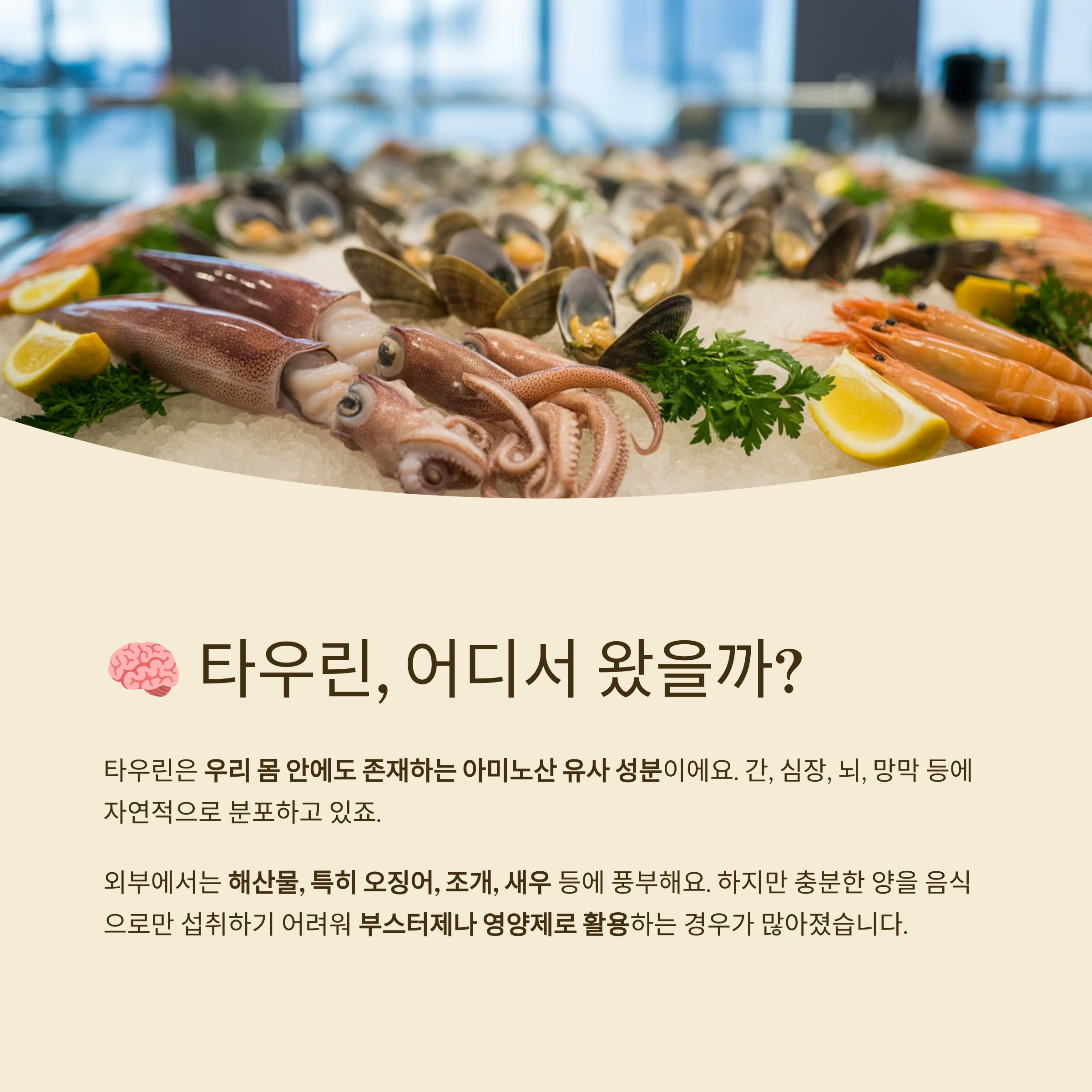 ✅ 타우린은 몸속에서 다양한 대사를 도와주는 천연 유래 성분