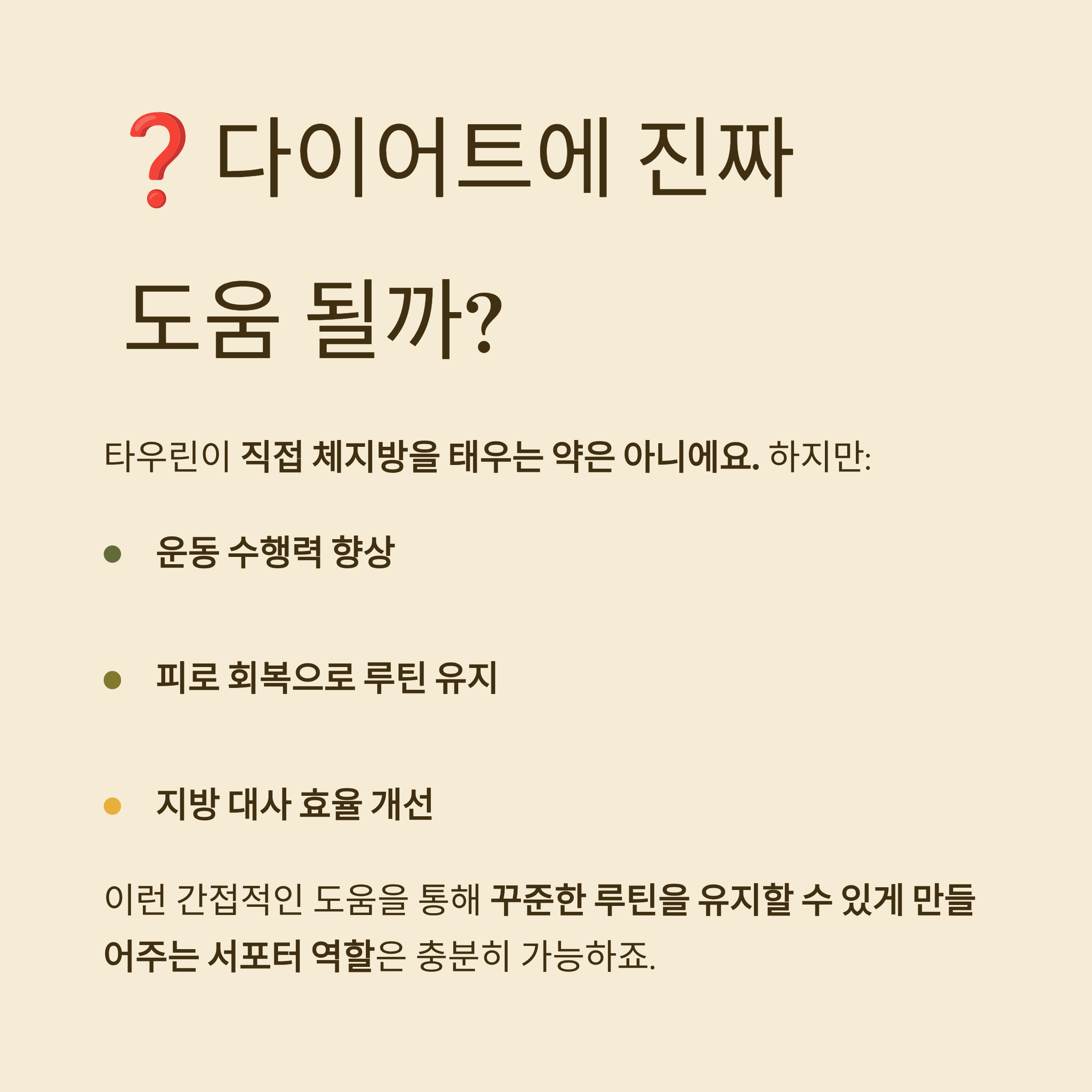 타우린이 직접 체지방을 태우는 약은 아니에요.